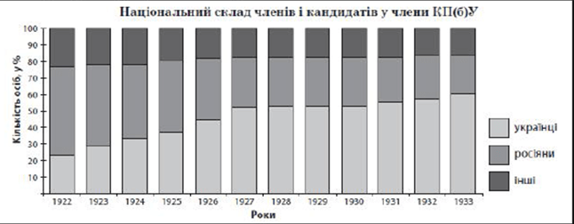На діаграмі відображено наслідки | А | культурної революції. | | Б | «Великого терору» | | В | Голодомору. | | Г | політики «коренізації». |