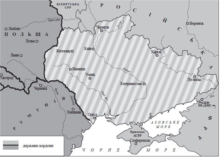 Державне утворення, територію якого позначено на картосхемі штрихуванням, на початку 1920-х років очолював | А | С. Петлюра. | | Б | Х. Раковський. | | В | Є. Петрушевич. | | Г | М. Грушевський. | Завдання №13